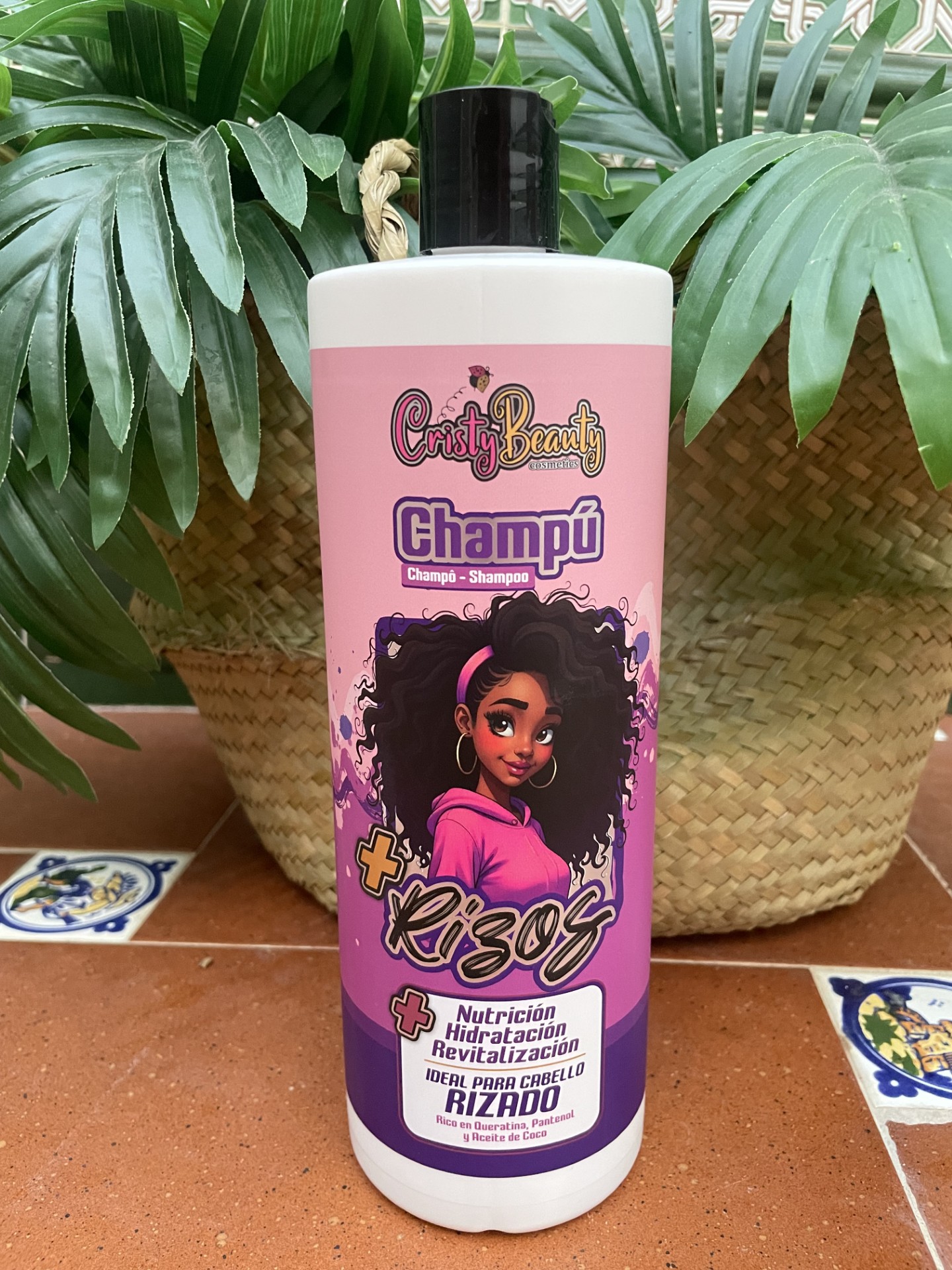 Champú diseñado para el cabello rizado rico en queratina, pantenol y aceite de coco.