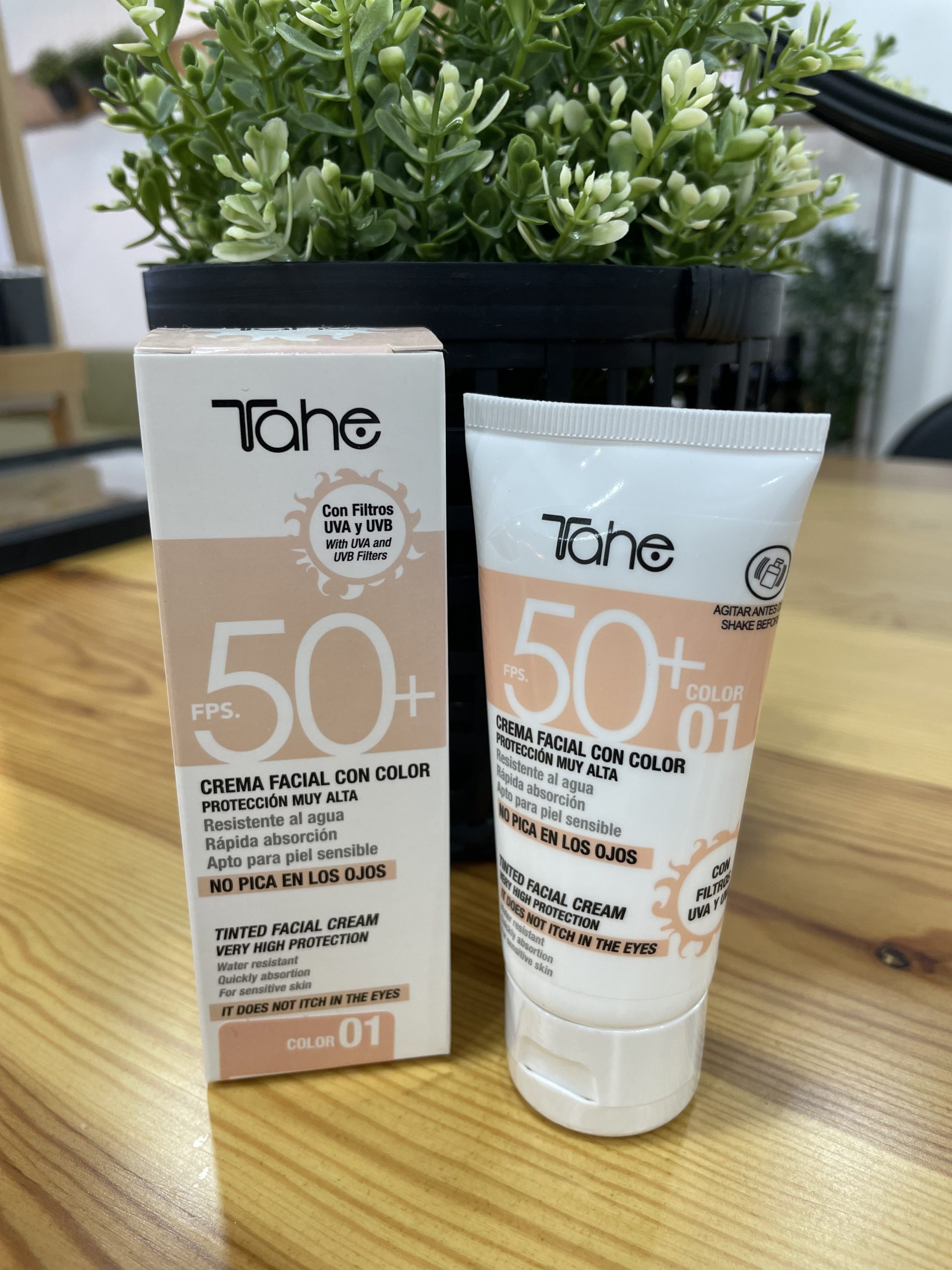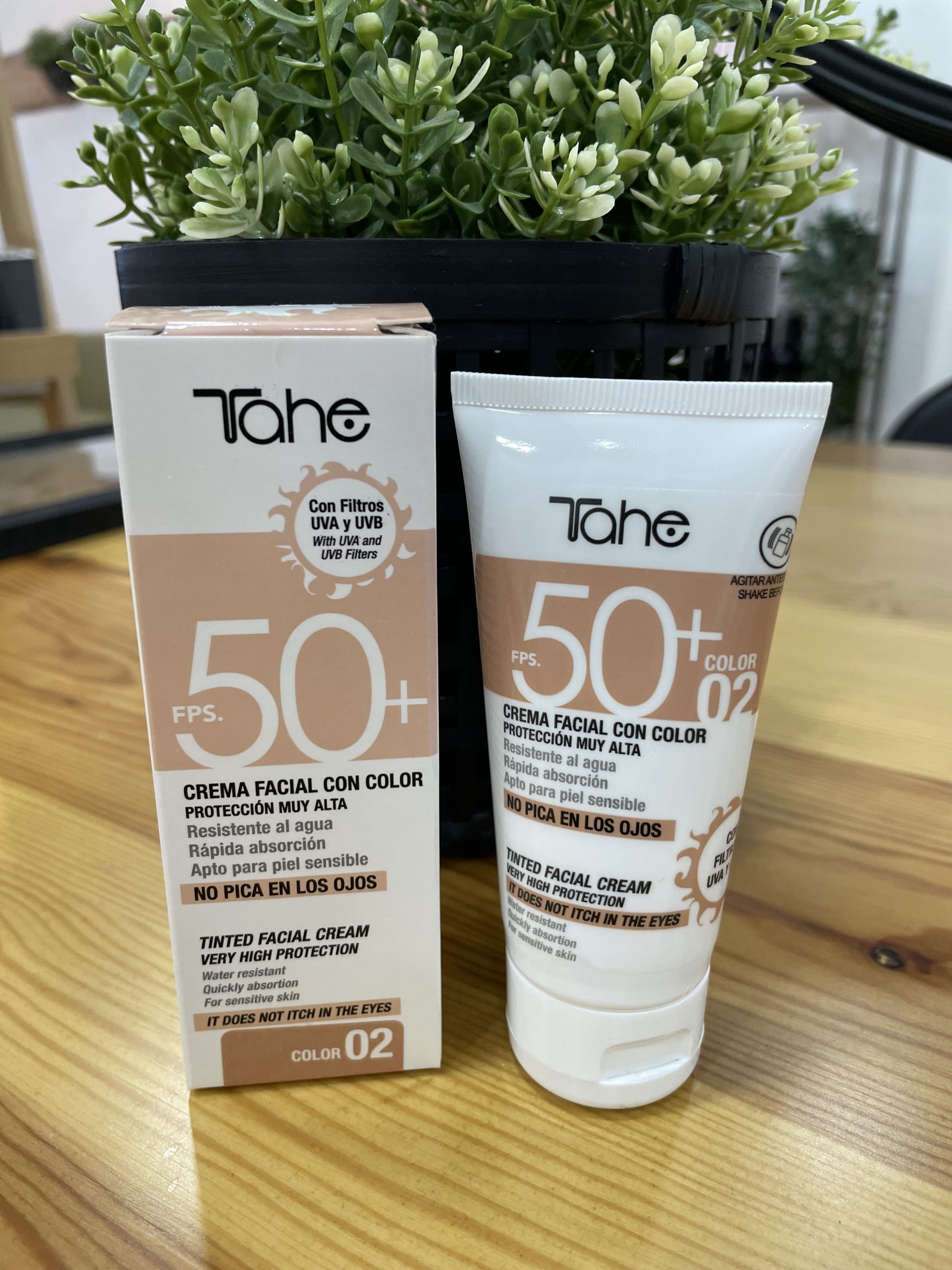 La crema facial Tahe SPF50 resistente al agua, sin picores en los ojos, de rápida absorción, indicada para pieles sensibles, y para aquellas que hagan deporte.