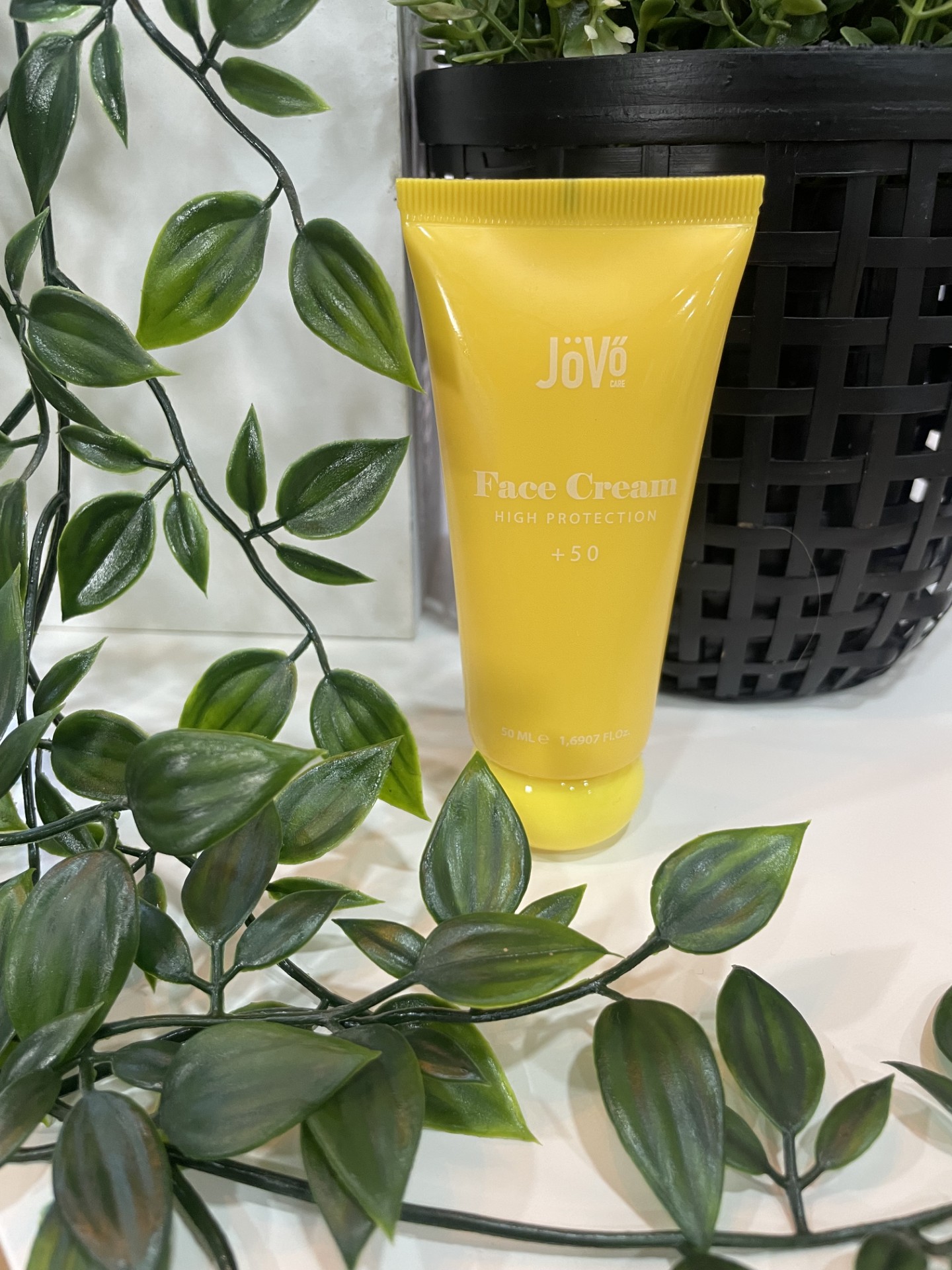 Jovo expositor crema facial. Esta crema es tu aliada perfecta para proteger tu rostro incluso en los días más intensos de verano. Su fórmula única está especialmente diseñada para brindar una alta protección contra los rayos del sol, mientras mantiene tu piel hidratada y nutrida.