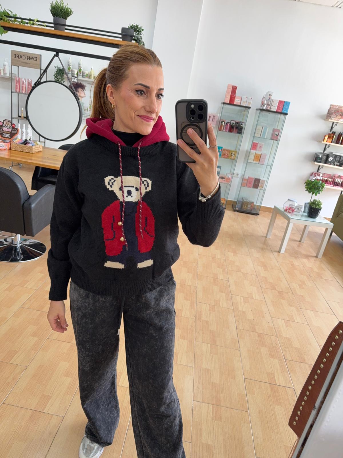 Un jersey super calentito y además tipo sudadera porque lleva capucha.