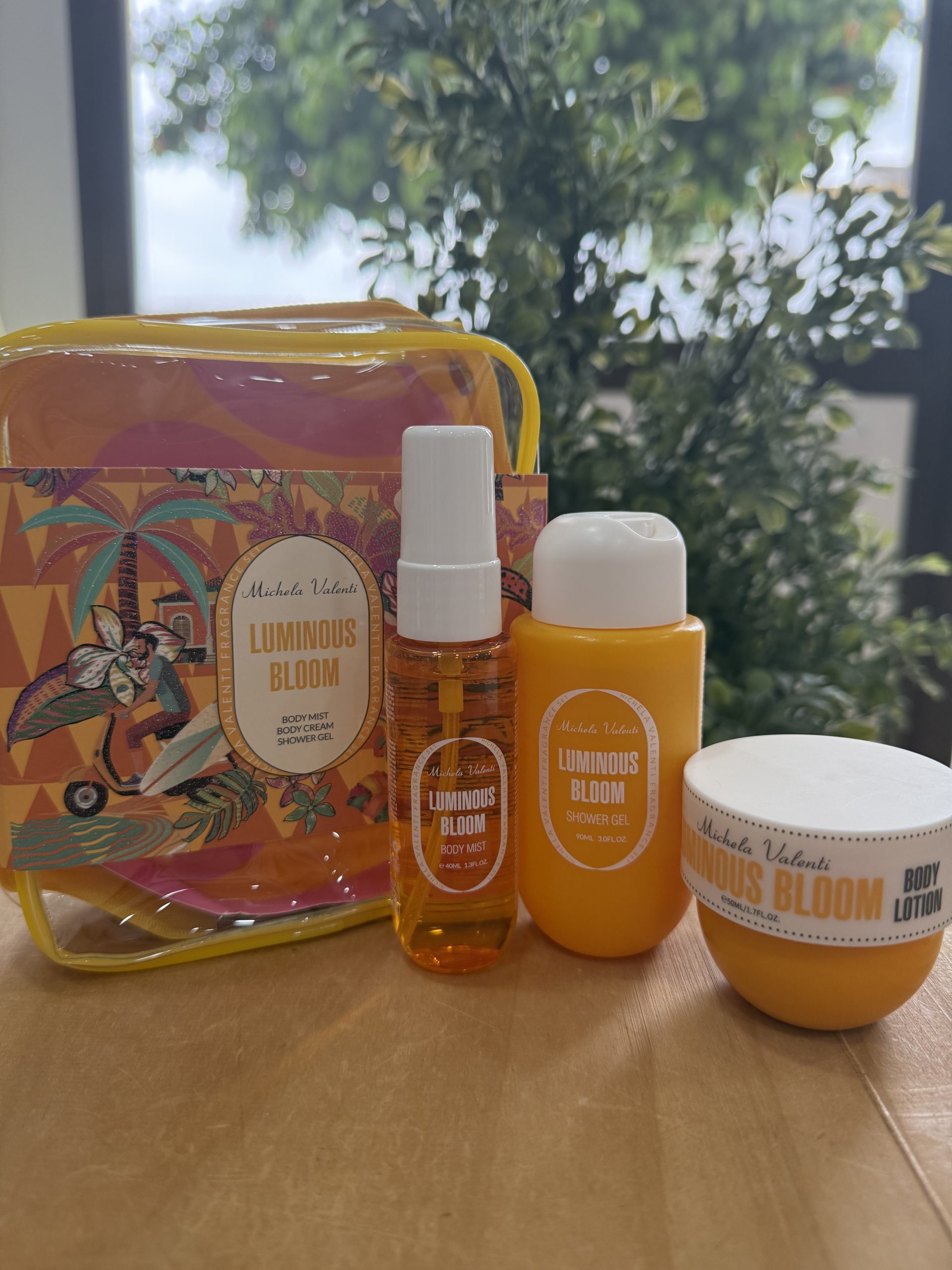 ¡Tu oasis personal en un solo neceser! El set Serene Grove y Luminous Bloom está diseñado para quienes buscan una experiencia de cuidado corporal completa con un aroma exótico y refrescante que te transportará directamente a un paraíso tropical.