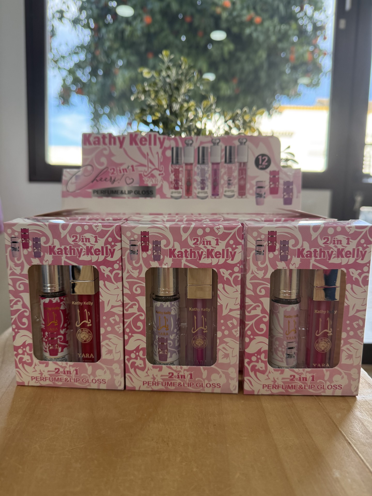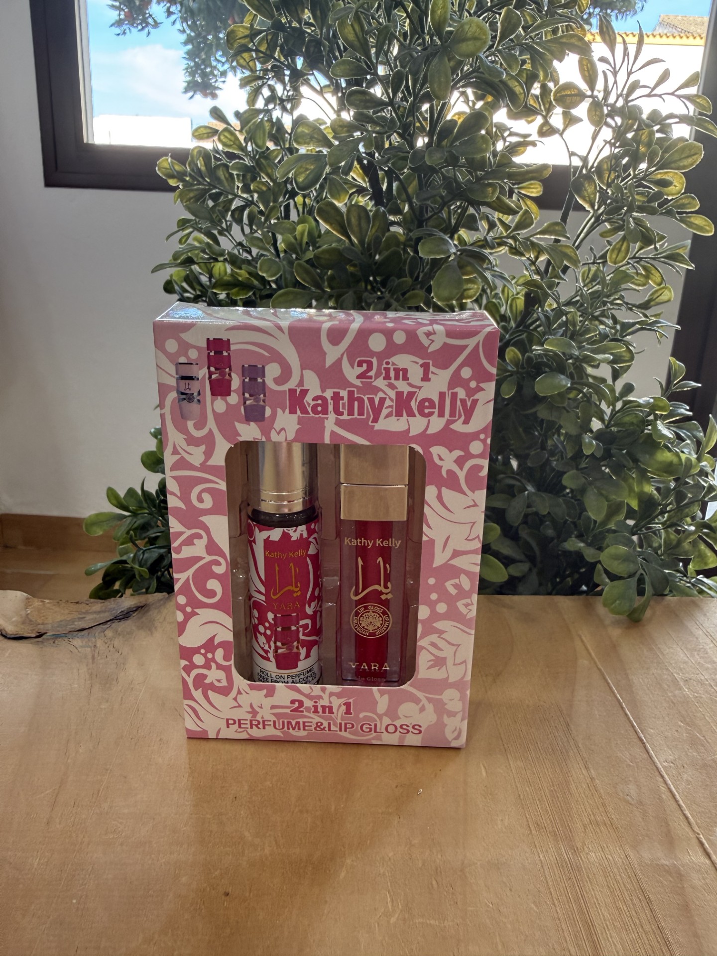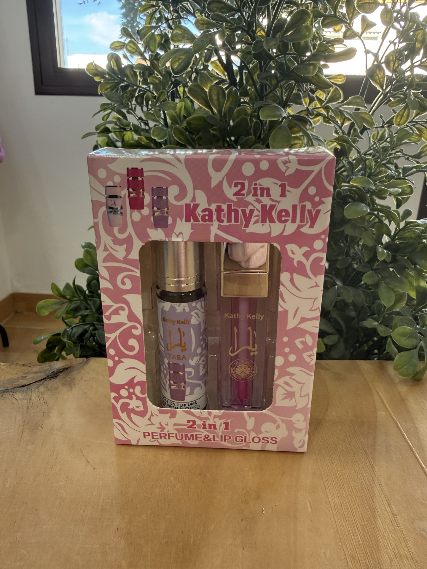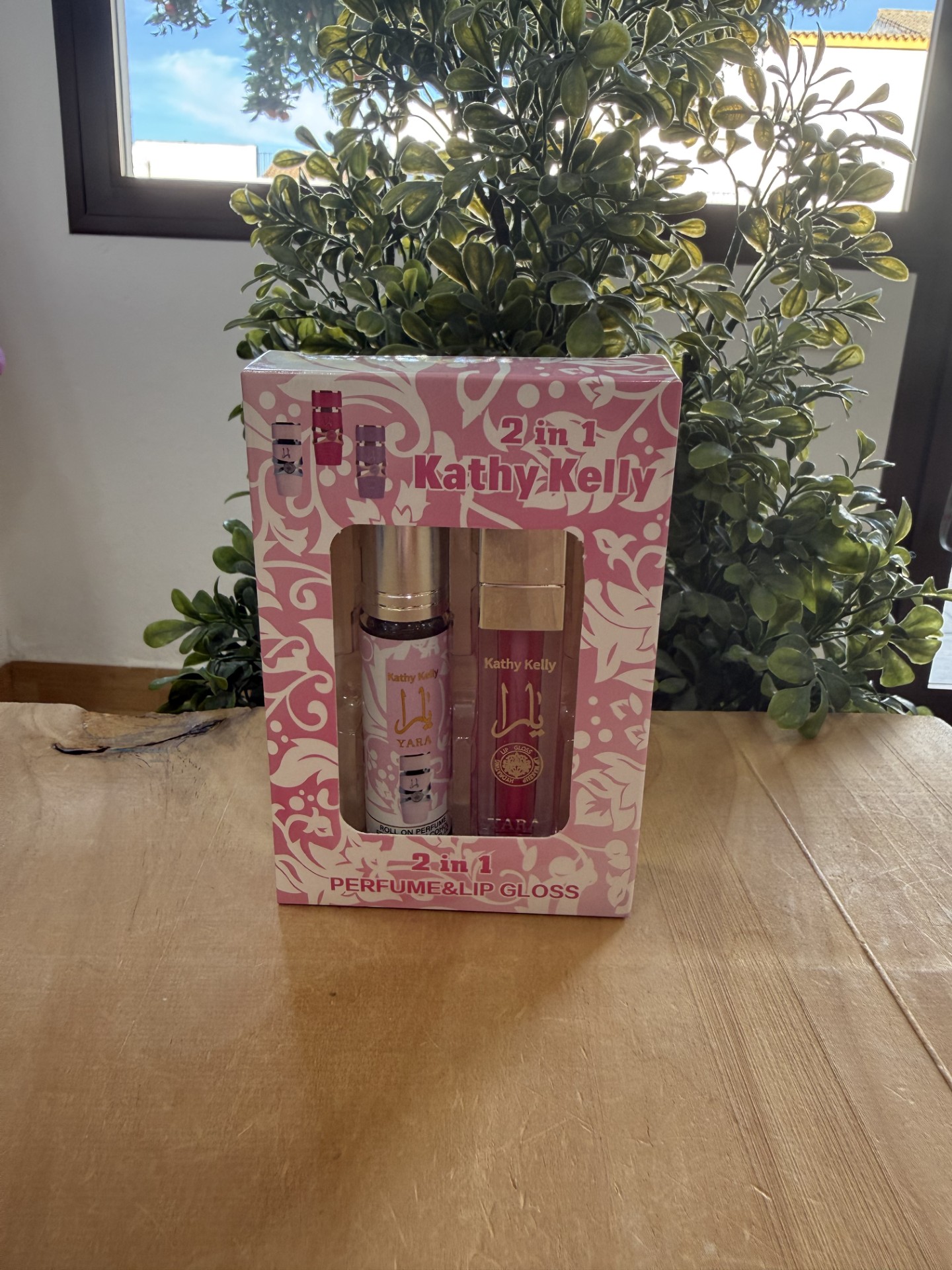 Mini set 2 en 1 Kathy Kelly: incluye un mini perfume Yara y un gloss labial en una presentación práctica y elegante. Perfecto para llevar en el bolso, viajar o regalar.